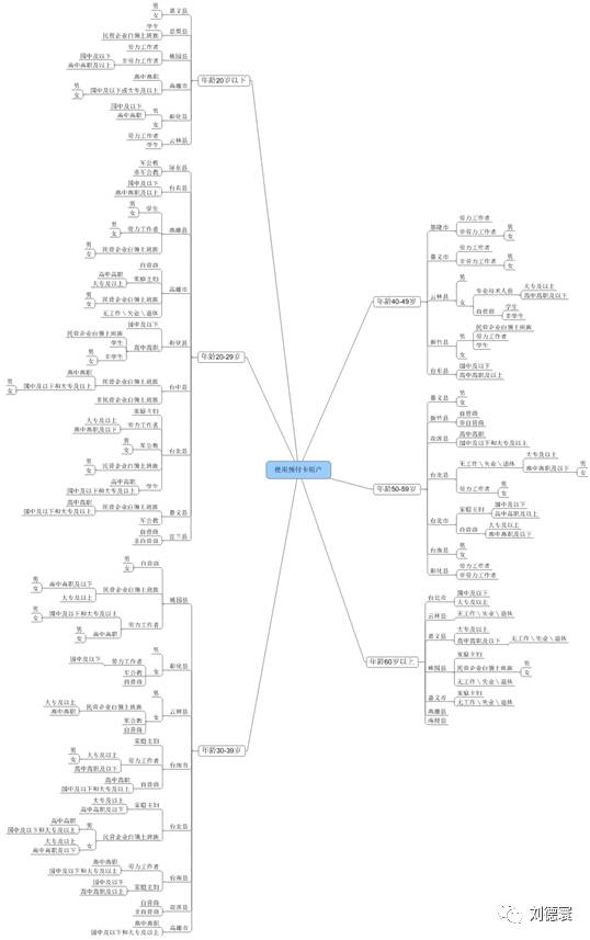 在年龄20岁以下时,嘉义县、彰化县的性别偏向上存在较大的差异;而在苗栗县、桃园县、高雄县及云林县中的职业存在较大的差异性。年龄在20-29岁之间,屏东县、高雄县、高雄市、台中县、台北县、嘉义县及宜兰县的职业成为重要的划分依据;而台东县跟彰化县以教育程度为重要的划分依据。